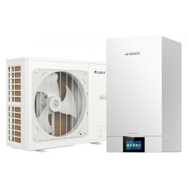 Тепловые насосы Gree GRS-CQ16Pd/NhH-M серии Versati III (сплит-системы) «воздух-вода» с инверторными компрессорами с впрыском пара предназначены для нагрева воды для горячего водоснабжения или напольного отопления, а также для отопления или охлаждения воздуха в помещении до 160 кв.м.Особенности и функции Gree GRS-CQ16Pd/NhH-M